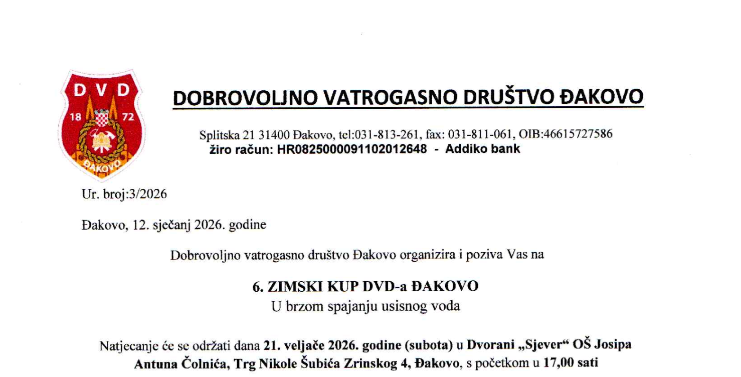 DVD Đakovo upućuje poziv natjecateljskim ekipama za nastup na 6. zimskom kupu DVD-a Đakovo u brzom spajanju usisnog voda koji će se održati 21.02.2026. godine u Dvorani “Sjever” OŠ Josipa [...]