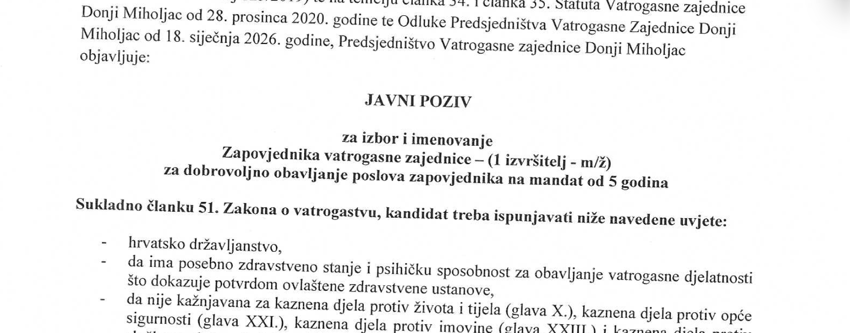 Poštovani, niže prenosimo tekst Javnog poziva za imenovanje zapovjednika VZ Donji Miholjac. […]