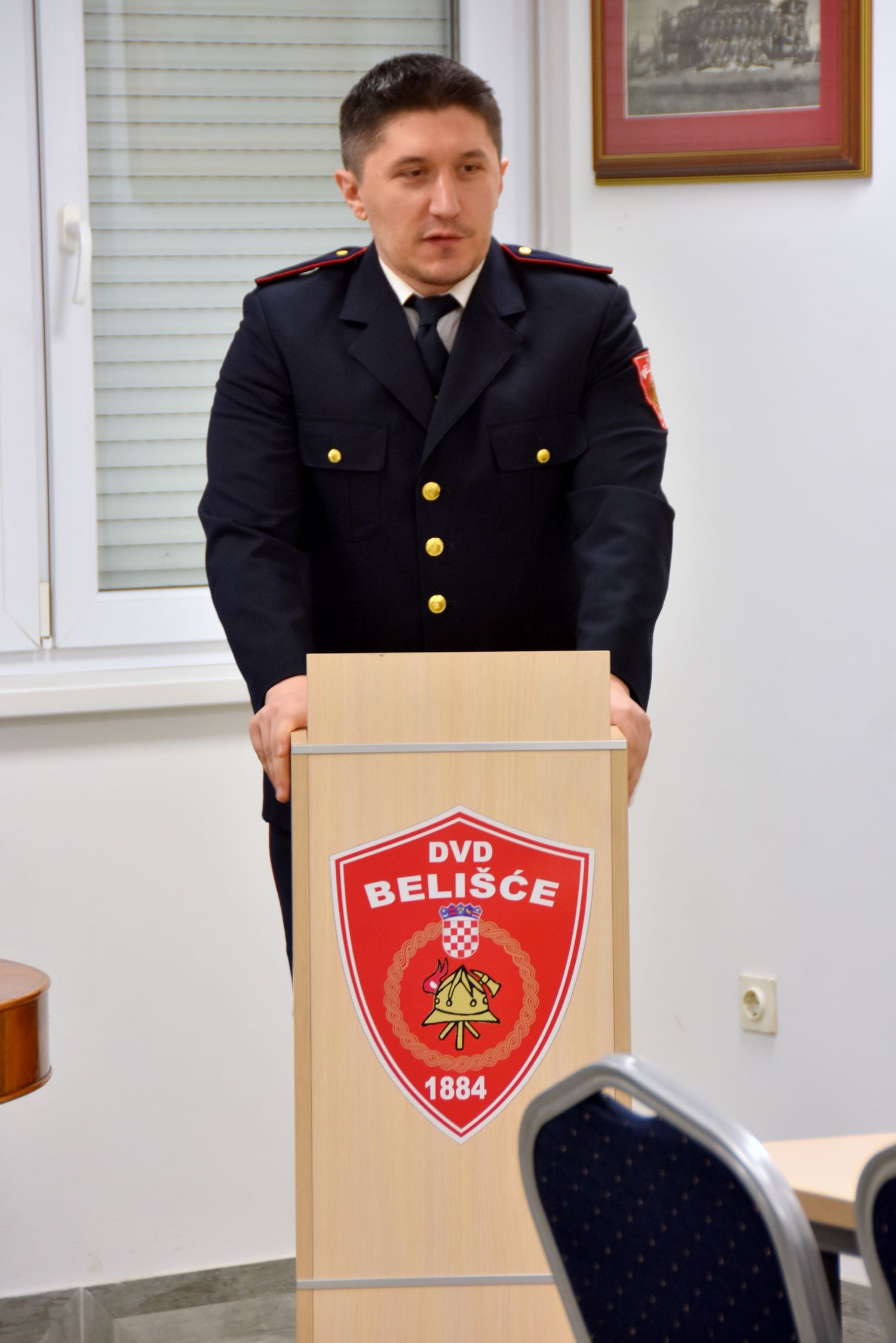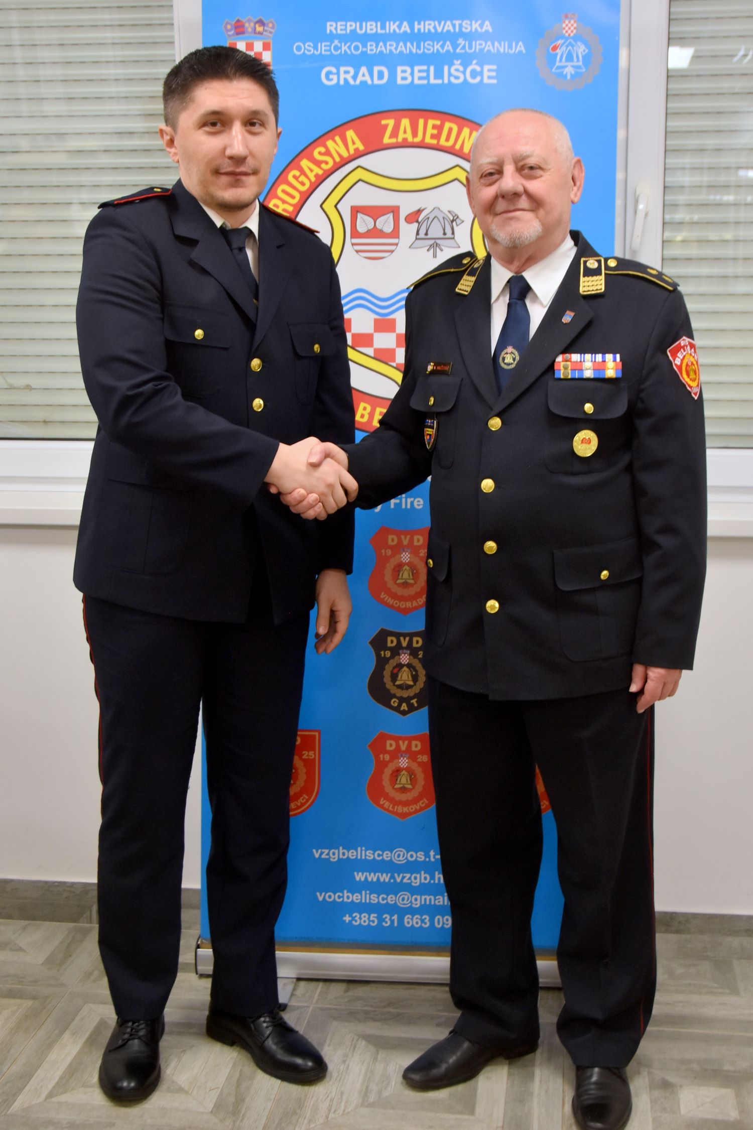 Potom se nazočnima u osobno ime i u ime novoizabranog zapovjednika VZG Belišće obratio predsjednik DVD-a Belišće i predsjednik VZG Belišće gospodin Mario Pernar. Osvrnuo se na dosadašnji položaj i rad vatrogasne zajednice pod vodstvom gospodina Nikice Muževića i gospodina Dubravka Čovčića za koje je rekao da su Zajednicu doveli na visoke razine radi kojih ista uživa veliki ugled i poštovanje na razini županijske vatrogasne zajednice, na čemu im se osobito zahvalio. U nadolazećem razdoblju smatra kako treba pokušati ojačati DVD-e na razini Zajednice te ujedno pokušati ostvariti dodatnu suradnju s Društvima iz drugih vatrogasnih zajednica. Uvjeren je da će u tome imati podršku kako grada i gradonačelnice, tako i županijske vatrogasne zajednice.