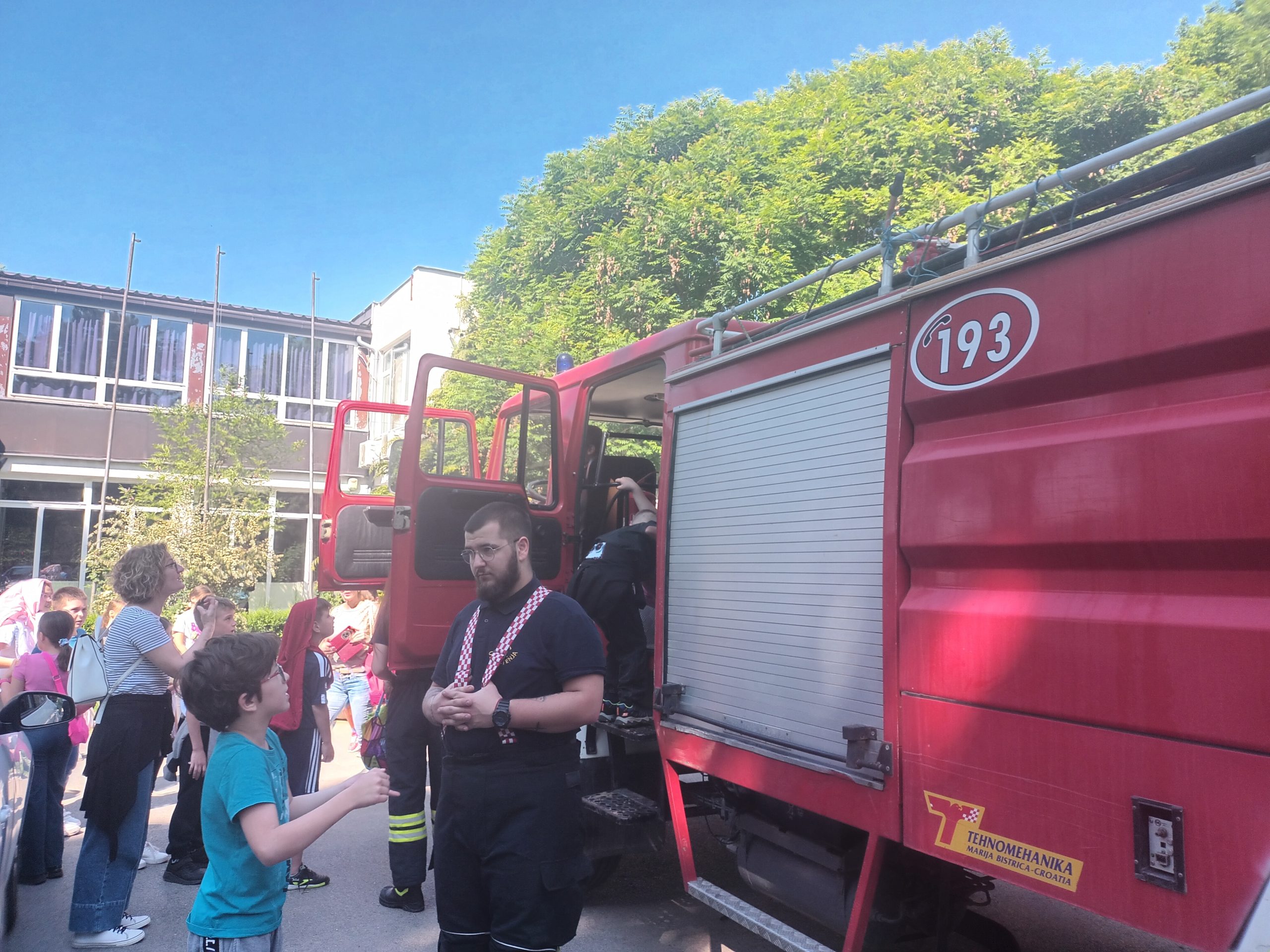 Voditeljica djece i mladeži Ankica Klobučar održala je kratku 20min. prezentaciju pogodnu za djecu prvih i drugih razreda Osnovne škole Tenja cc 60 djece sa razrednim učiteljima uz pomoć voditeljice Lare Jakšić te vatrogasnih operativaca Saše Tot i Ane Sanković koji su djeci pokazali interventna vatrogasna odijela, opremu te izolacijski aparat s maskom za disanje. Djeci smo pokazali kako jednako i djevojke i dječaci mogu postati vatrogasci i vatrogaskinje. Navalno vatrogasno vozilo koje je dovezao vatrogasni Zapovjednik Dvd Osijek Tenja Krešimir Kovačević bilo je glavna atrakcija isto kao i vatrogasne brentače i mete za pomladak iz kojih su djeca špricala vodu i gađali mete. Zahvaljujemo Osnovnoj školi Tenja na suradnji i veselimo se budućim susretima i novim malim članovima društava.