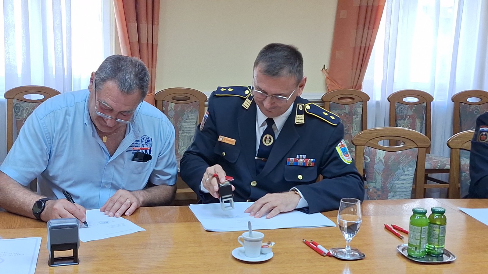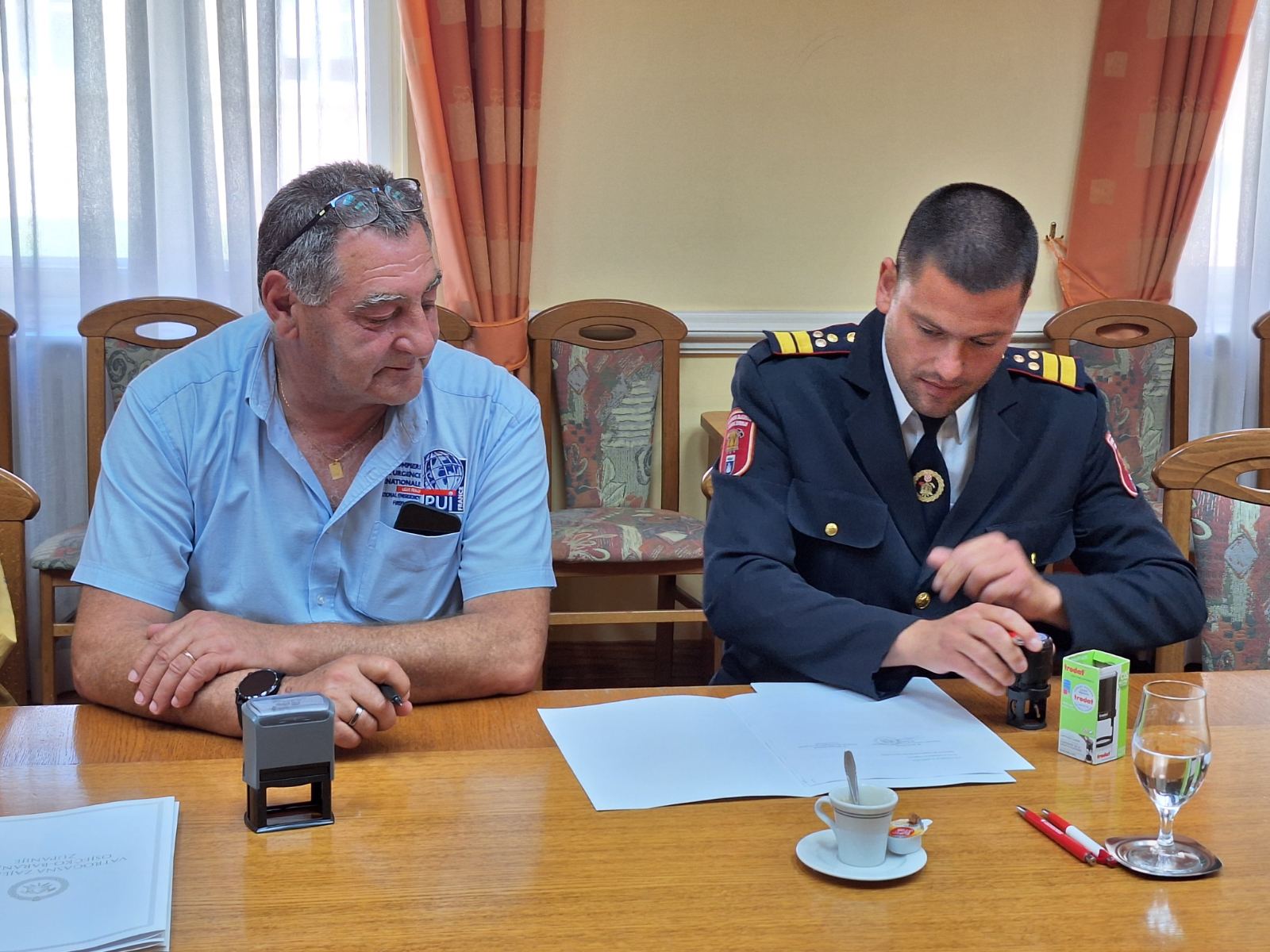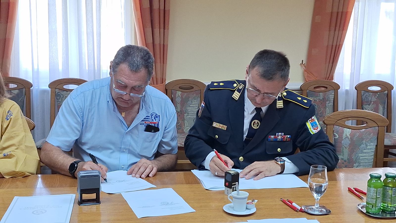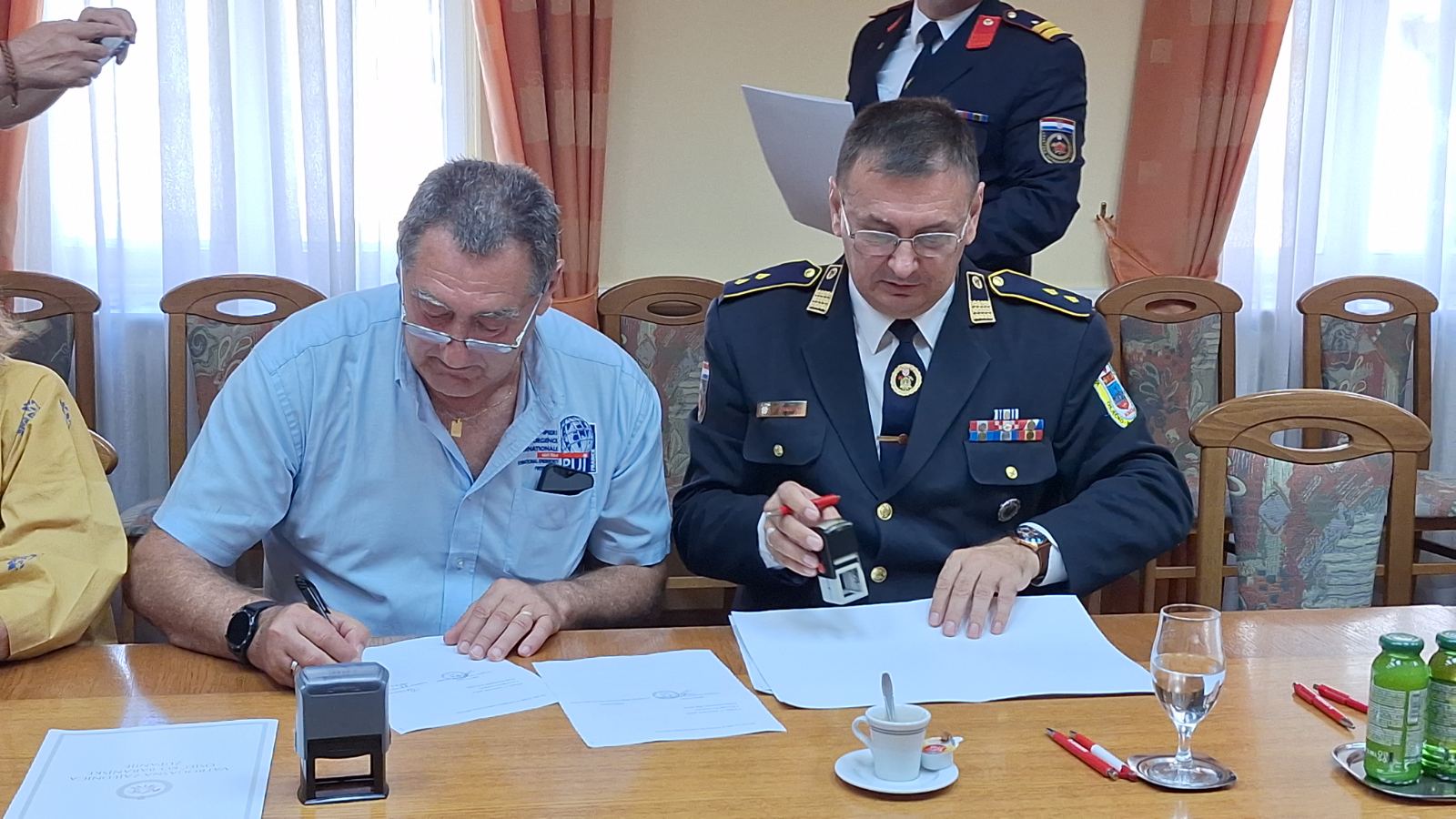 U ime Vatrogasne zajednice Osječko – baranjske županije Konvenciju je potpisao predsjednik zajednice g. Zdenko Čarapar, a u ime francuske udruge Međunarodna vatrogasna pomoć njezin predsjednik utemeljitelj g. Philippe Besson.